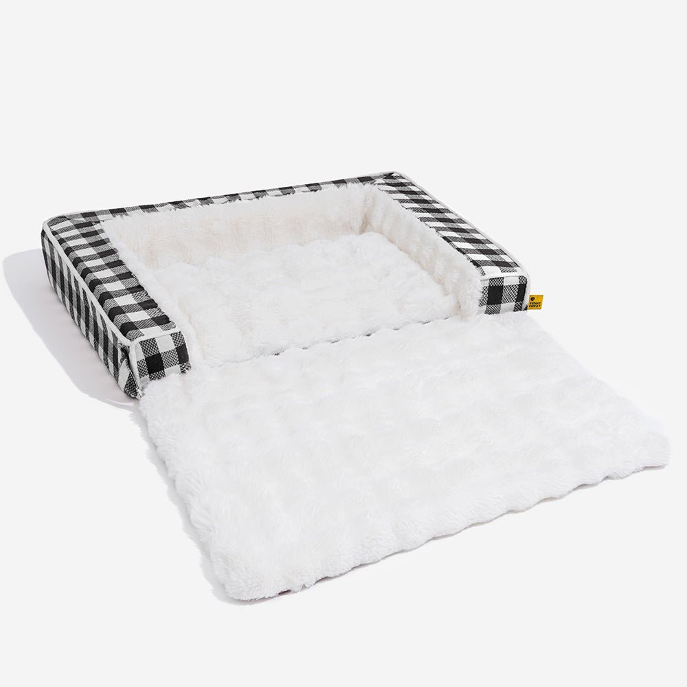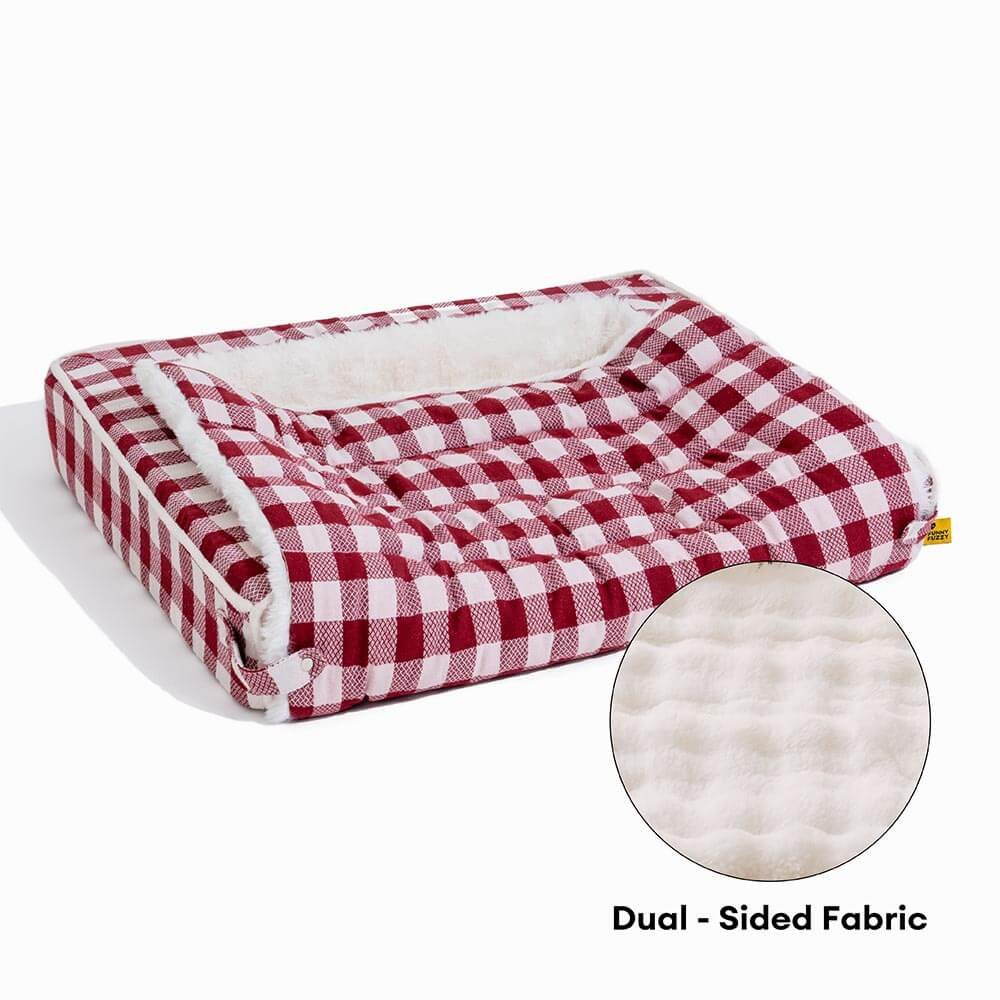 Give your furry friend the ultimate sleep experience with our Classic Plaid Ergonomic Calming Dog Bed. Designed for comfort and versatility. it features sponge-padded support and a clever 2-in-1 design that expands for extra space or folds for warmth. Perfect for naps or lounging. this bed is the ideal gift for your pet!