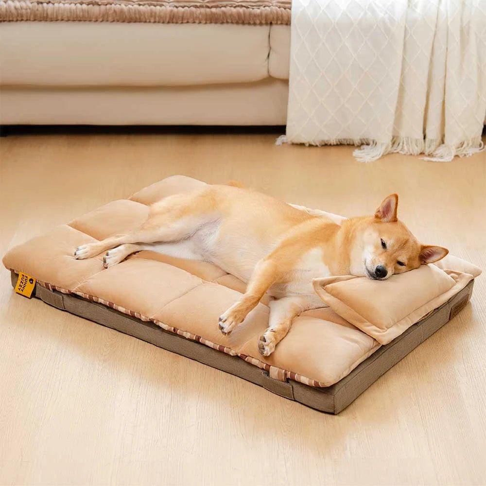 Human-Like Bed Design for Shared Comfort: Inspired by the structure and look of human beds. the mattress-style silhouette and stripe detailing create a cozy resting spot that mirrors your own — perfect for pets who love sleeping near their humans.