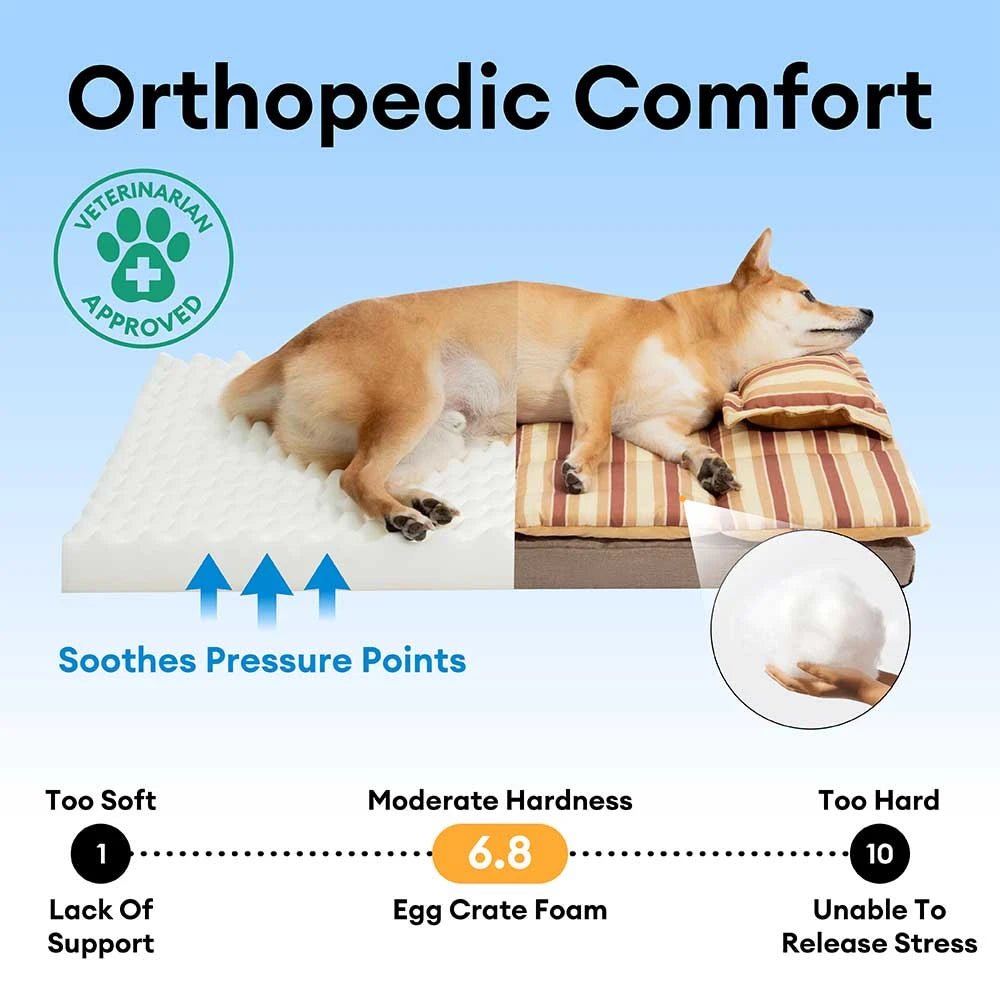 Orthopedic Sponge Core: Built for unmatched coziness. this bed combines an orthopedic egg crate foam base with a top layer of fluffy PP cotton—delivering firm support underneath and plush softness on top. Perfectly balanced for restful. all-day lounging.